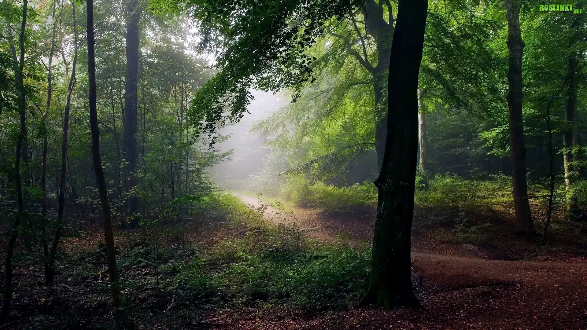 Rośliny: Las, Drzewa, Mgła, Ścieżka, Drzewa