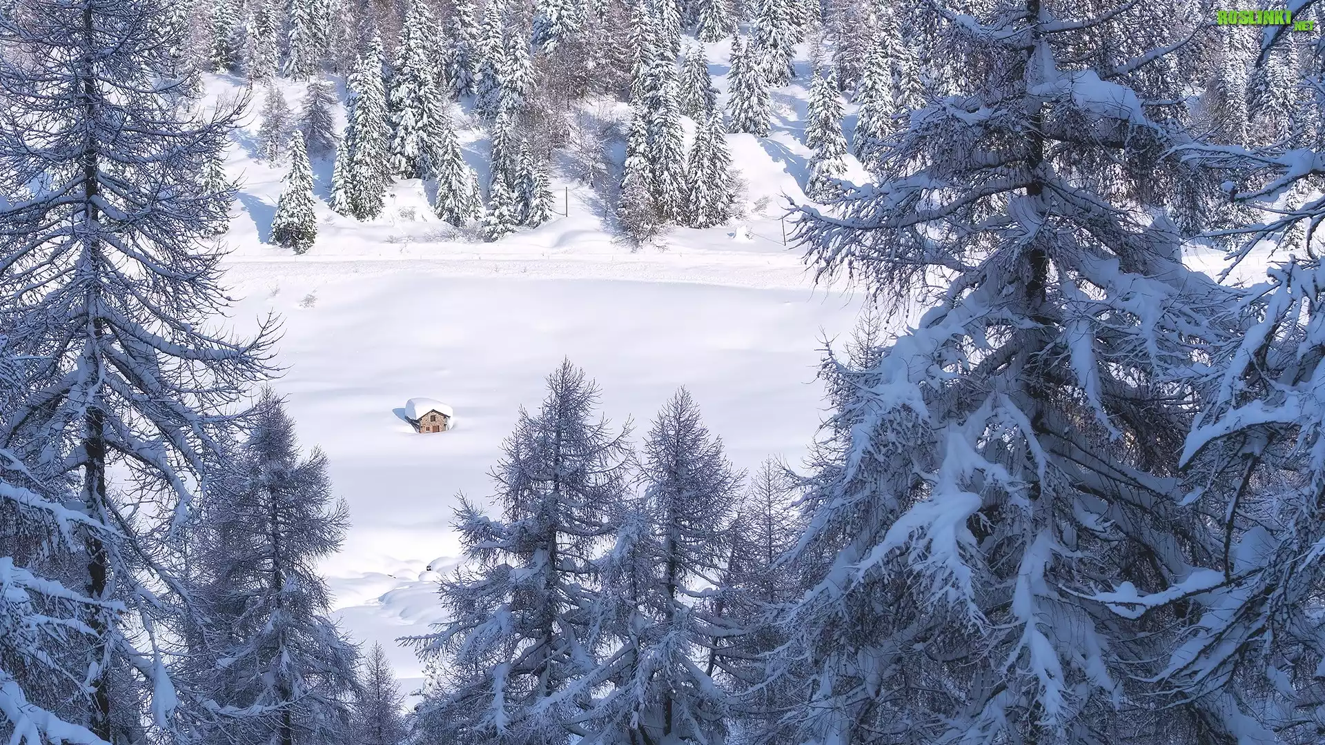 Rośliny: Las, Ośnieżone, Drzewa, Dom, Zima