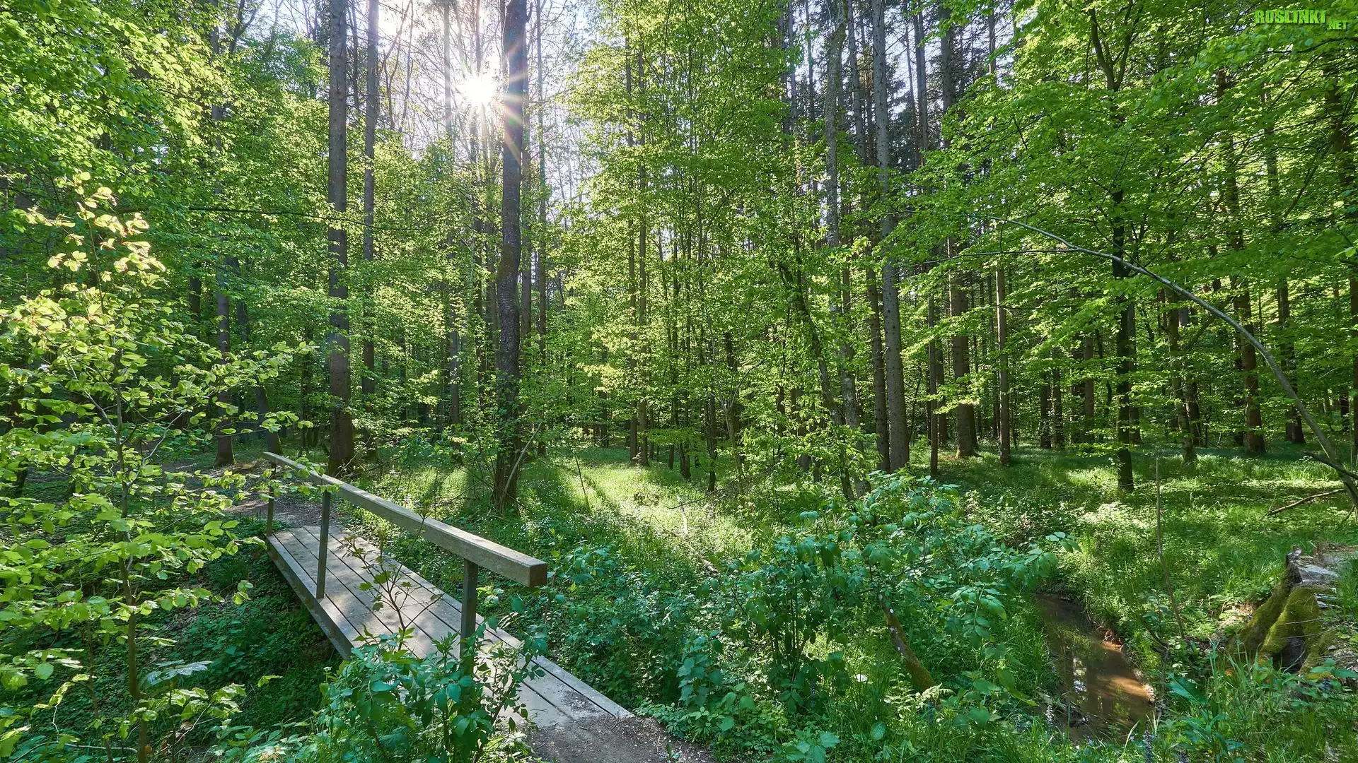 Rośliny: Lato, Las, Drewniana, Kładka, Drzewa