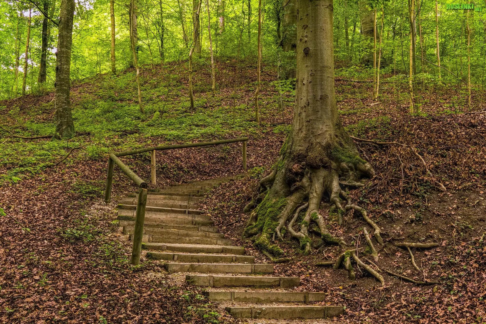 Rośliny: Las, Drzewa, Korzenie, Liście, Drewniane, Schody