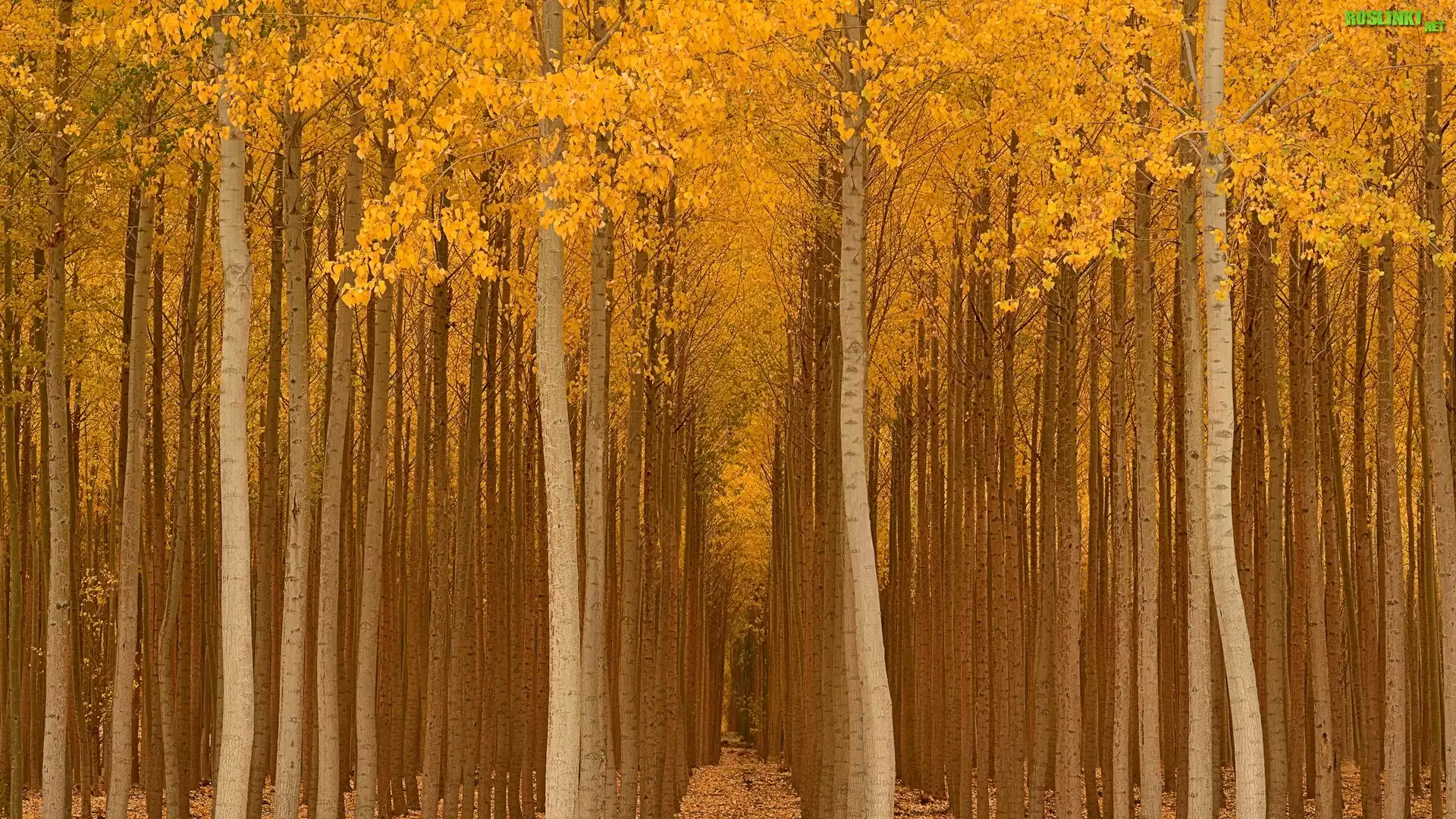Rośliny: Jesień, Las, Drzewa, Topole osikowe, Żółte, Liście, Droga