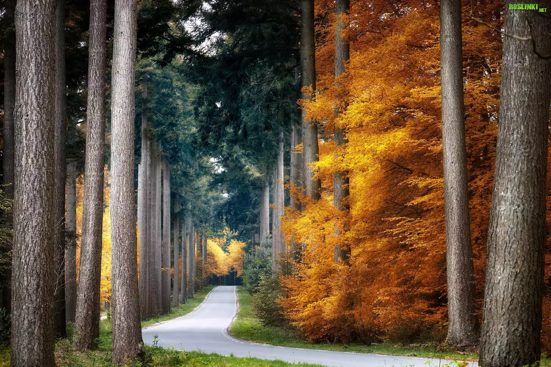 Rośliny: Las, Droga, Szpaler, Drzew, Jesień