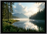 Rośliny: Jezioro, Las, Drzewa, Rośliny, Chmury
