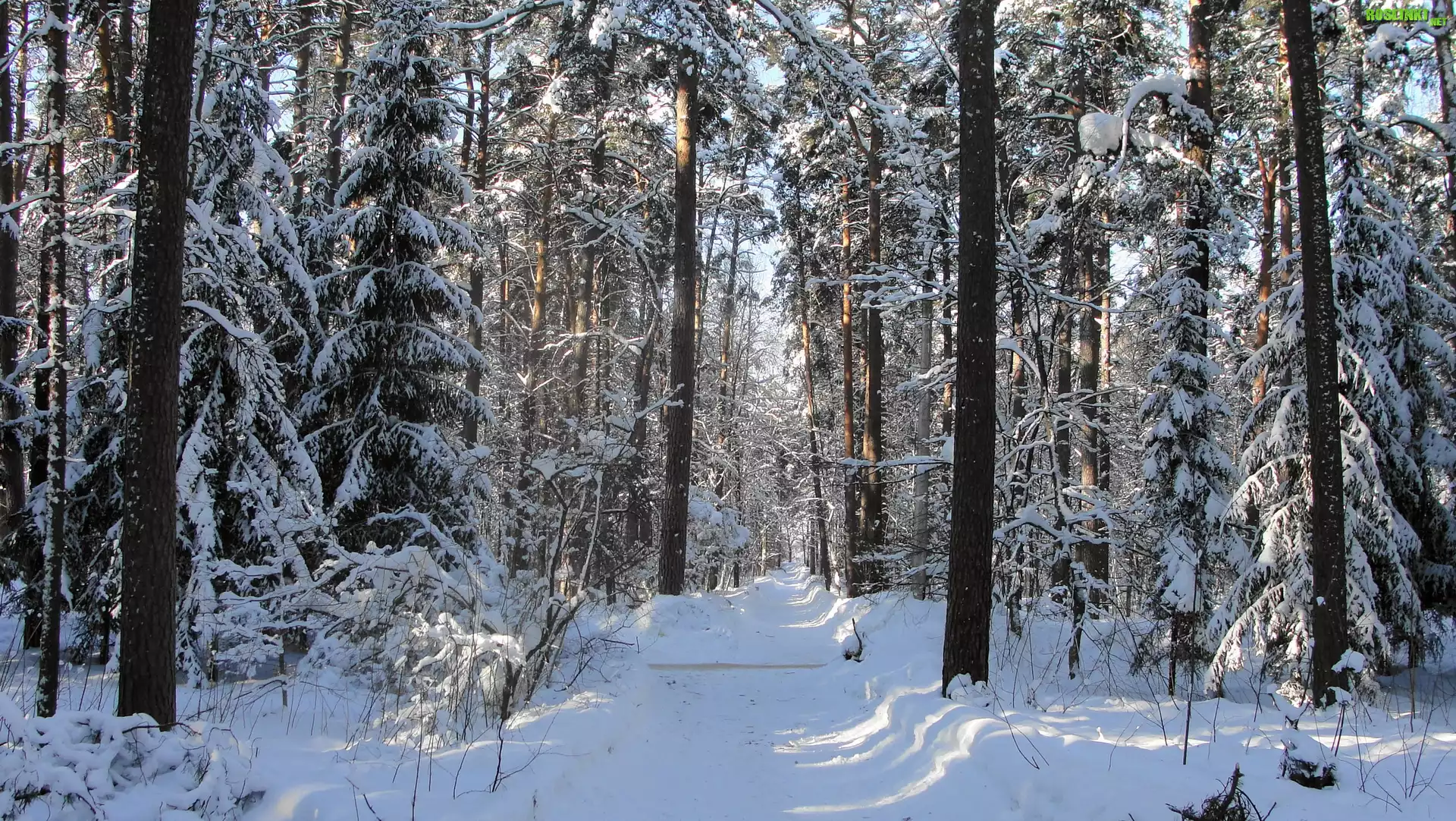 Rośliny: Las, Droga, Drzewa, Zima