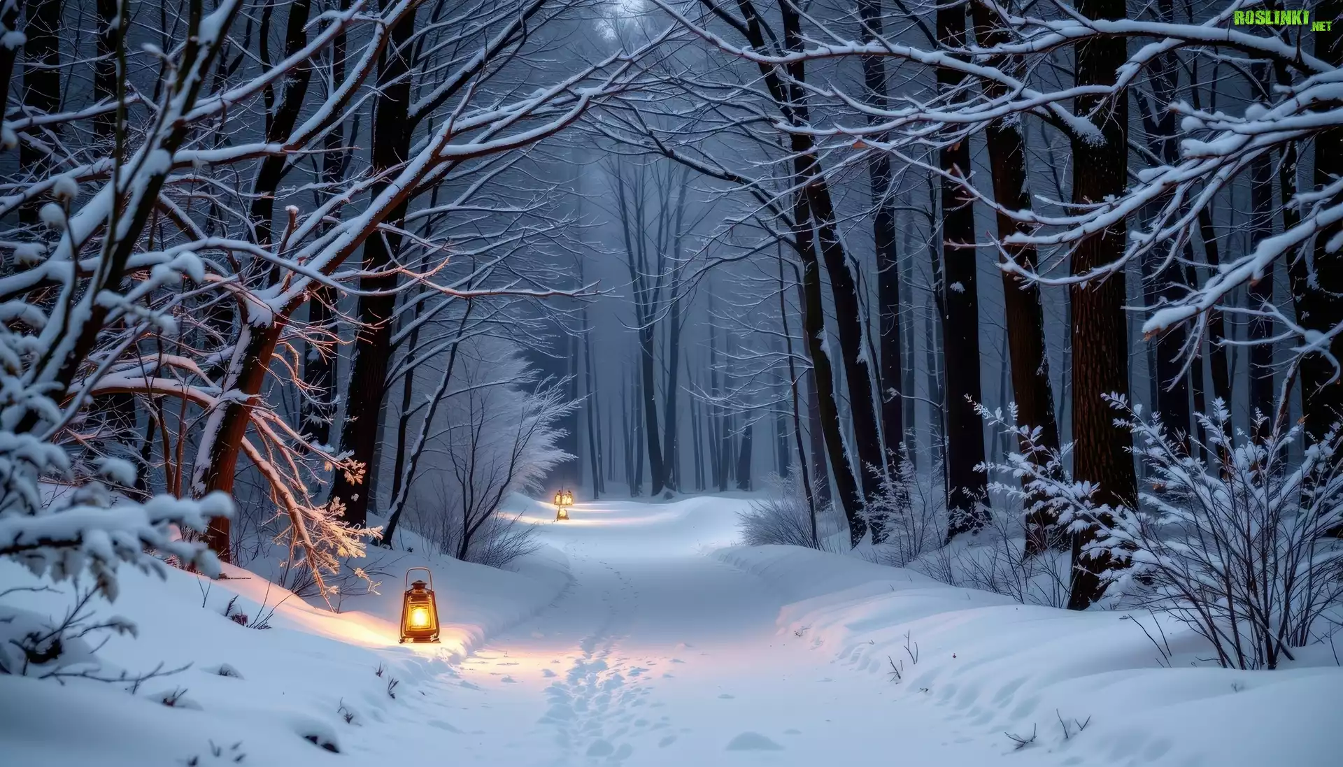 Rośliny: Zima, Las, Drzewa, Śnieg, Lampy
