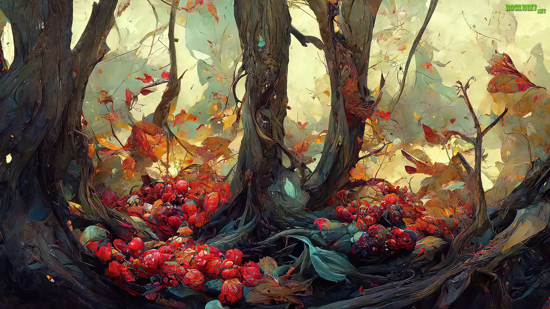 Rośliny: Grafika, Las, Drzewa, Liście, Owoce