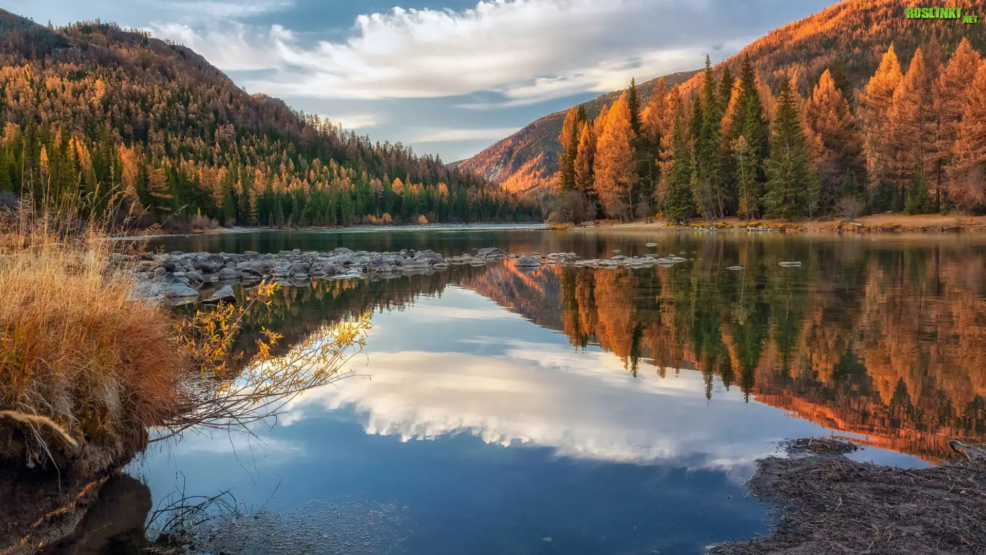 Rośliny: Jesień, Góry, Rzeka, Argut, Las, Pożółkłe, Drzewa, Ałtaj, Rosja