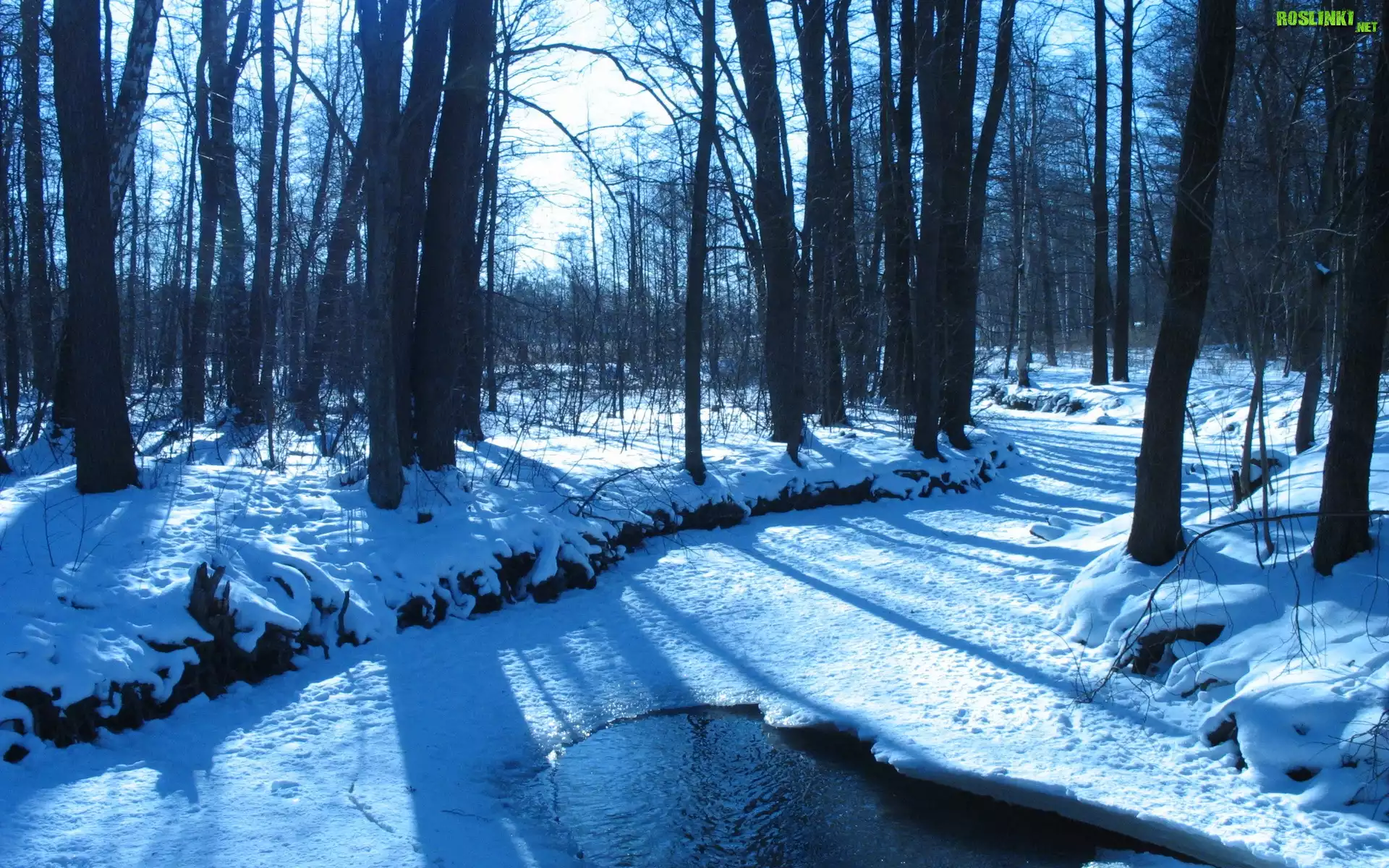 Rośliny: Las, Rzeka, Drzewa, Zima
