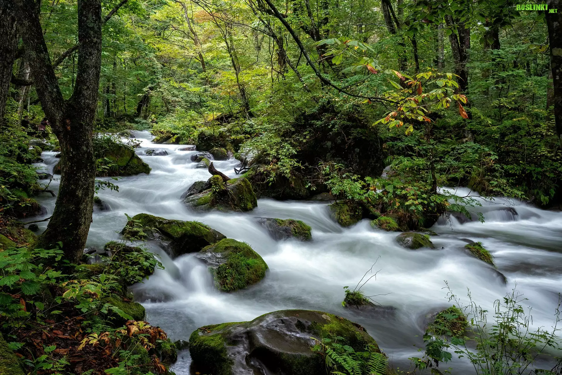 Rośliny: Zielony, Las, Drzewa, Potok, Skały