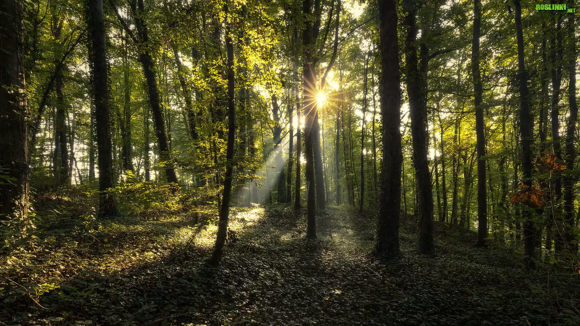 Rośliny: Zielony, Las, Drzewa, Promienie słońca