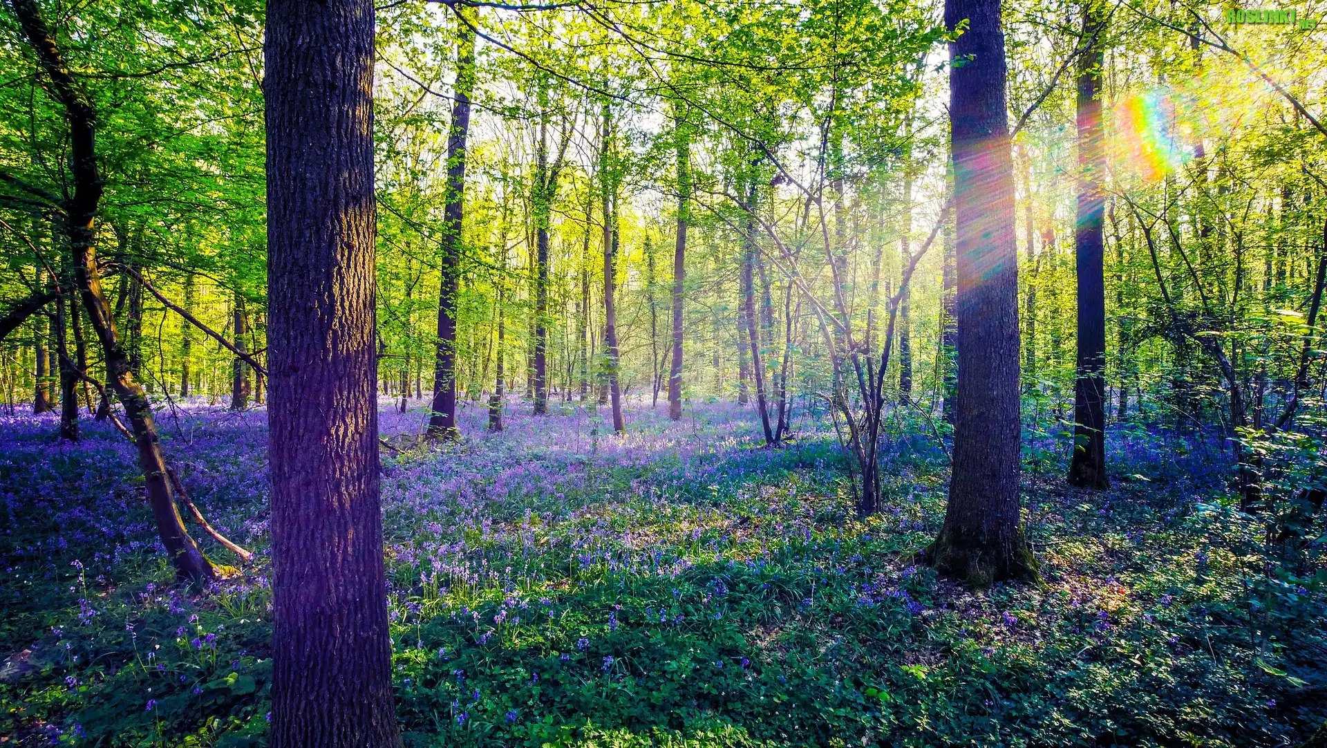 Rośliny: Las, Przebijające światło, Kwiaty, Drzewa, Wiosna