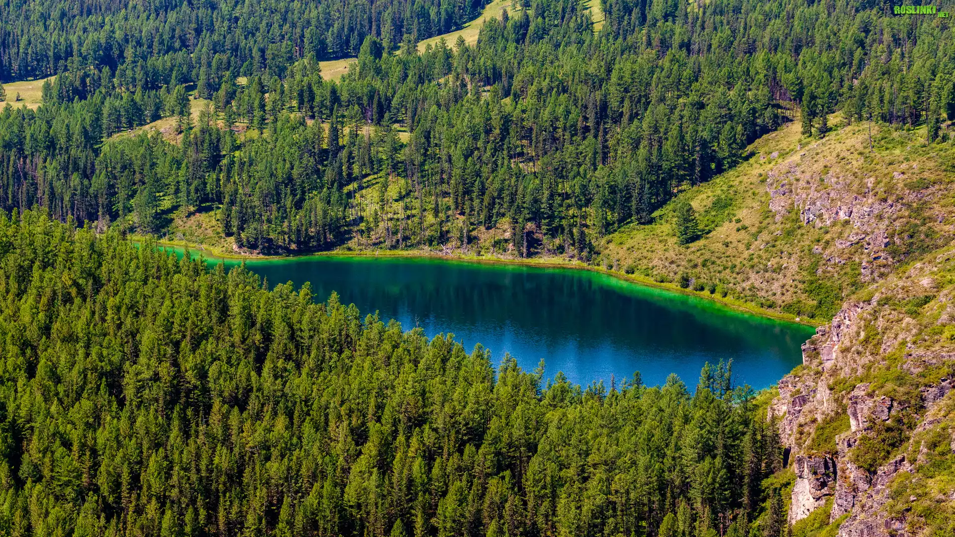 Rośliny: Jezioro, Las, Drzewa, Góry, Wzgórza