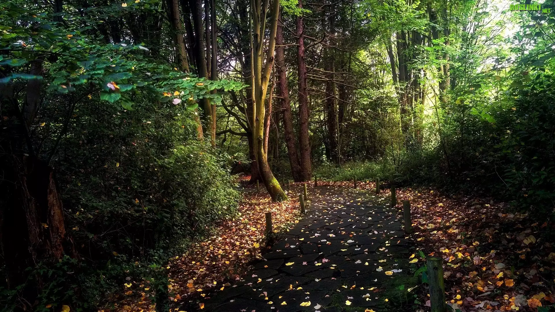 Rośliny: Las, Droga, Zielone, Drzewa, Liście