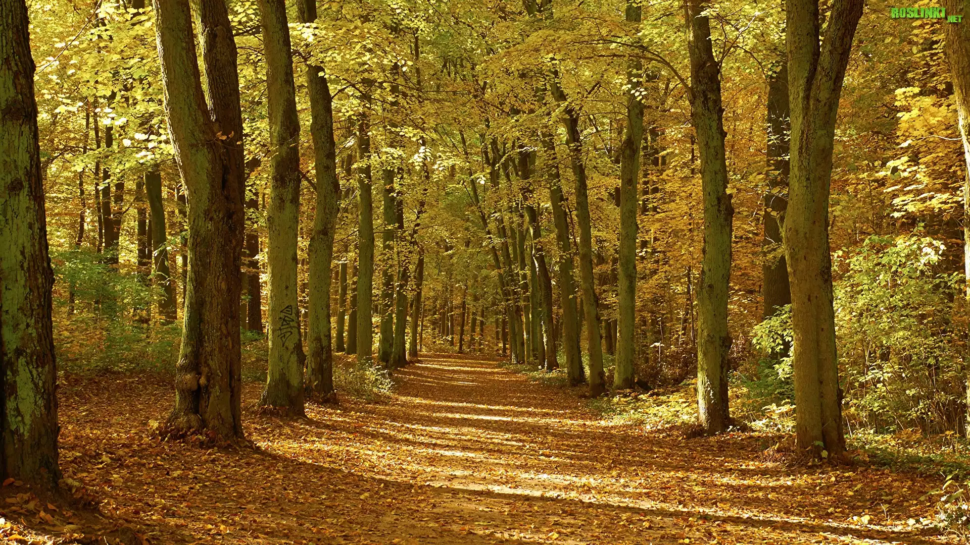 Rośliny: Jesień, Las, Drzewa, Droga, Opadłe, Liście, Słoneczny, Dzień