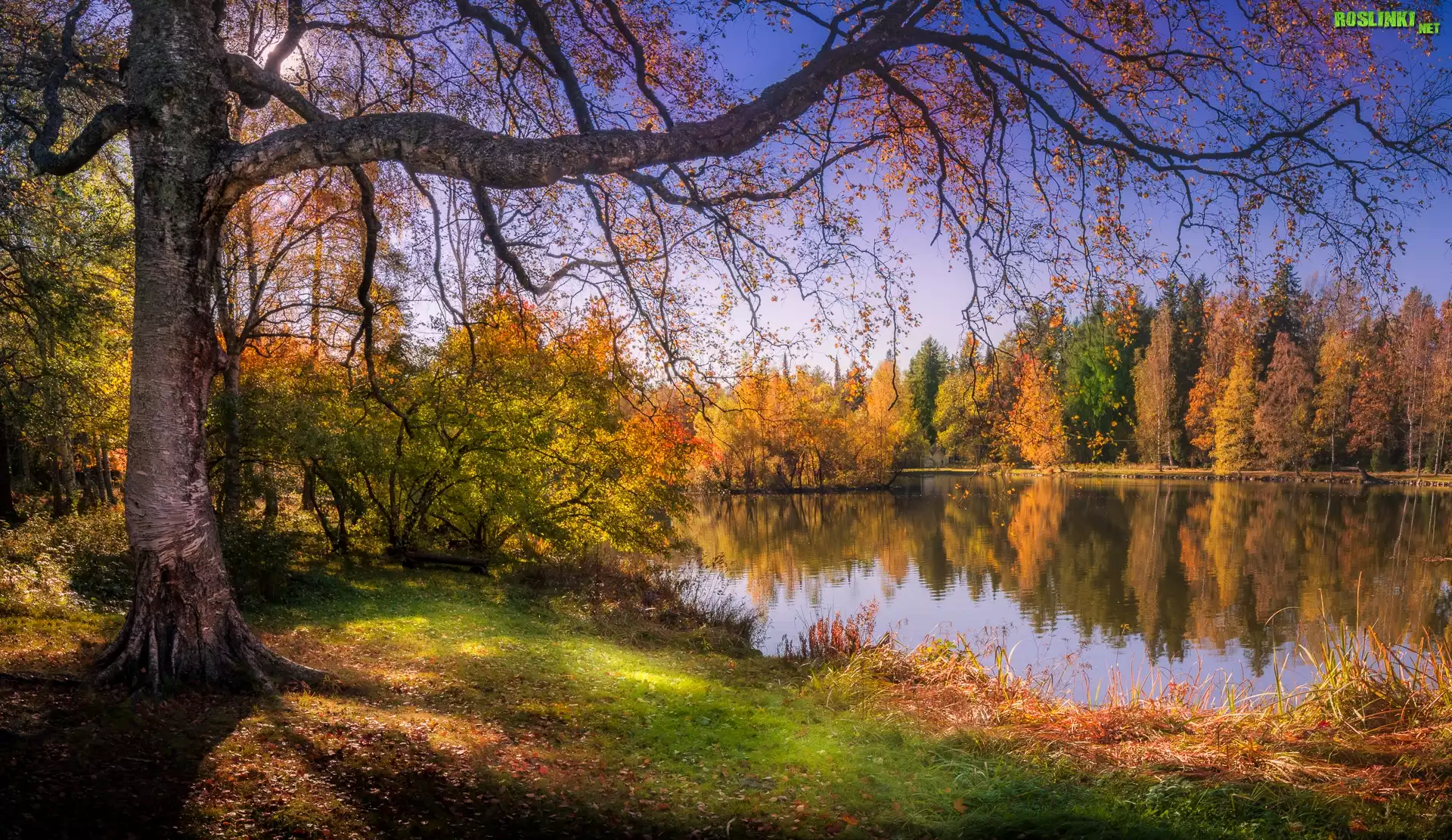 Rośliny: Las, Jezioro, Jesień, Drzewa