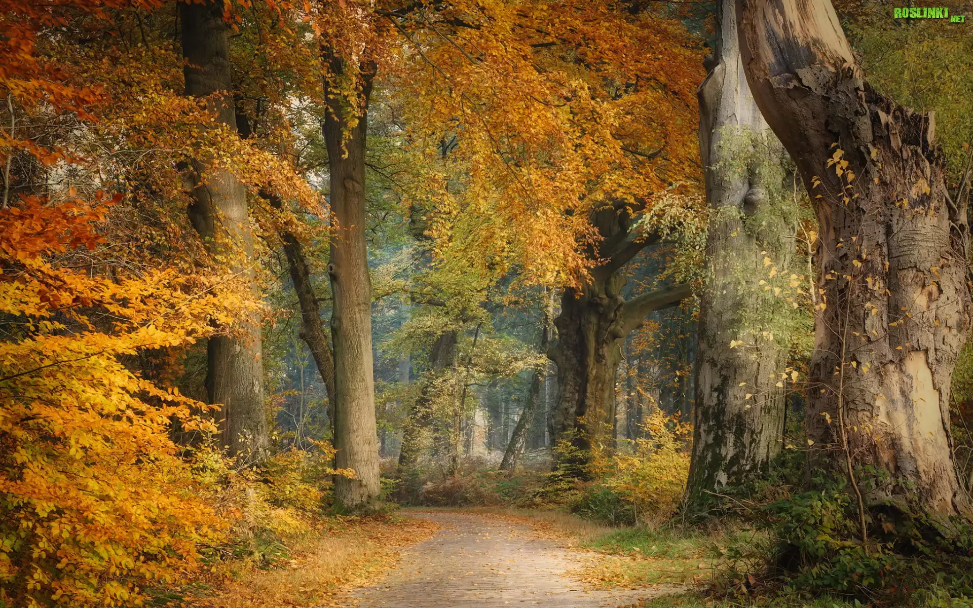 Rośliny: Las, Drzewa, Kolorowe, Liście, Jesień, Droga
