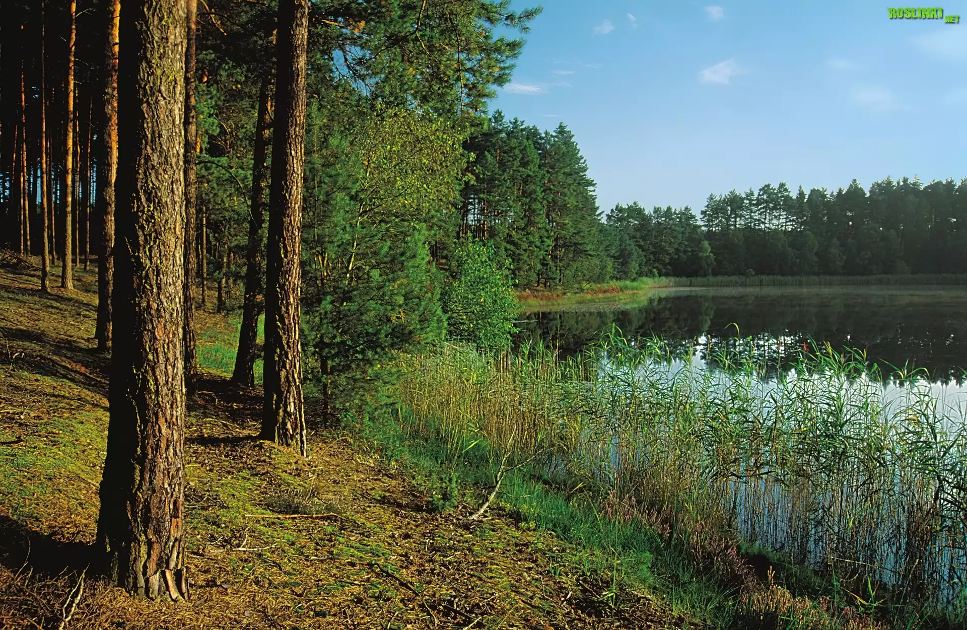 Rośliny: Las, Sosnowy, Jezioro, Szuwary