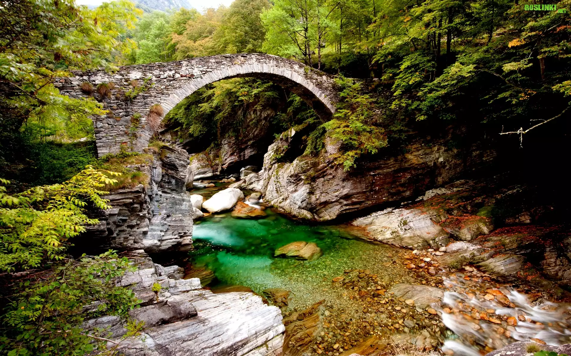 Rośliny: Las, Mostek, Kamienie, Rzeczka
