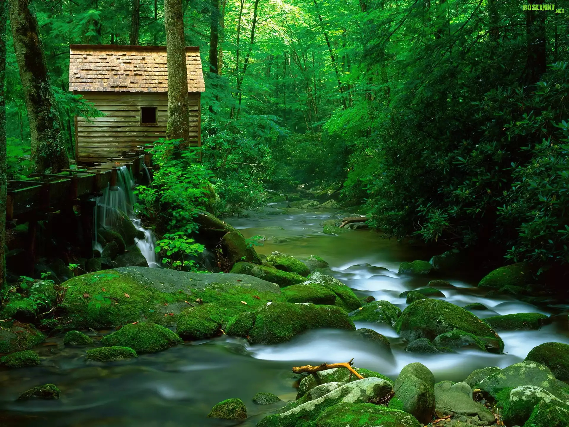 Rośliny: Las, Rzeka, Kamienie, Domek
