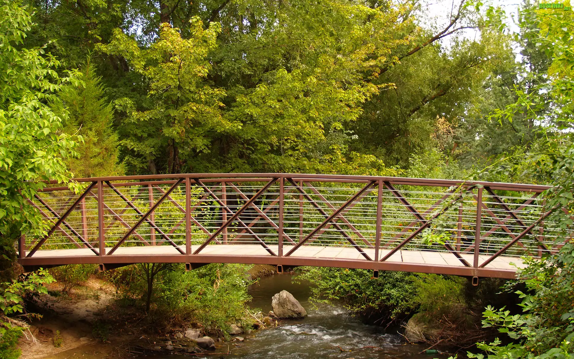 Rośliny: Las, Drzewa, Rzeka, Kamienie, Most