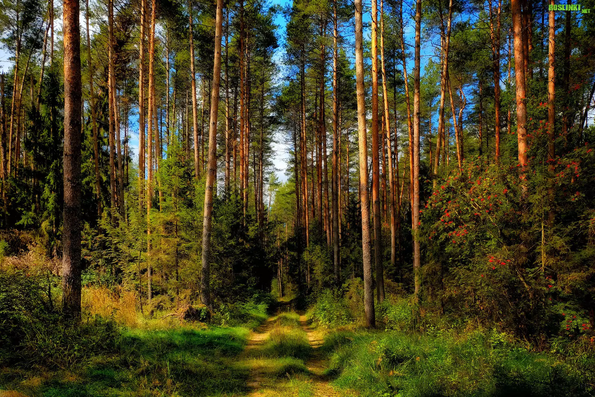 Rośliny: Las, Wysokie, Drzewa, Ścieżka, Krzewy, Trawa