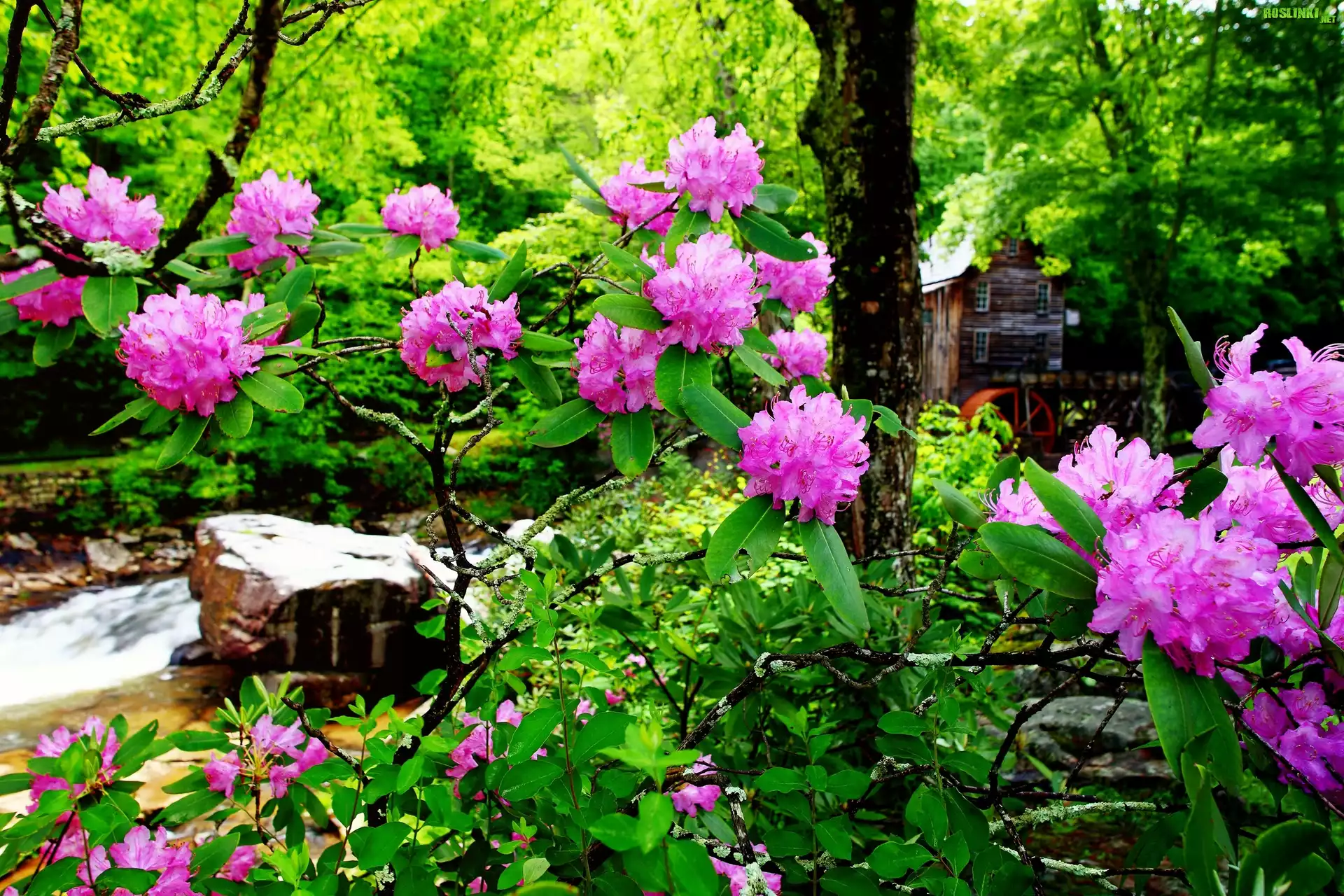Rośliny: Las, Młyn, Wodny, Strumyk, Kwitnące, Rododendrony
