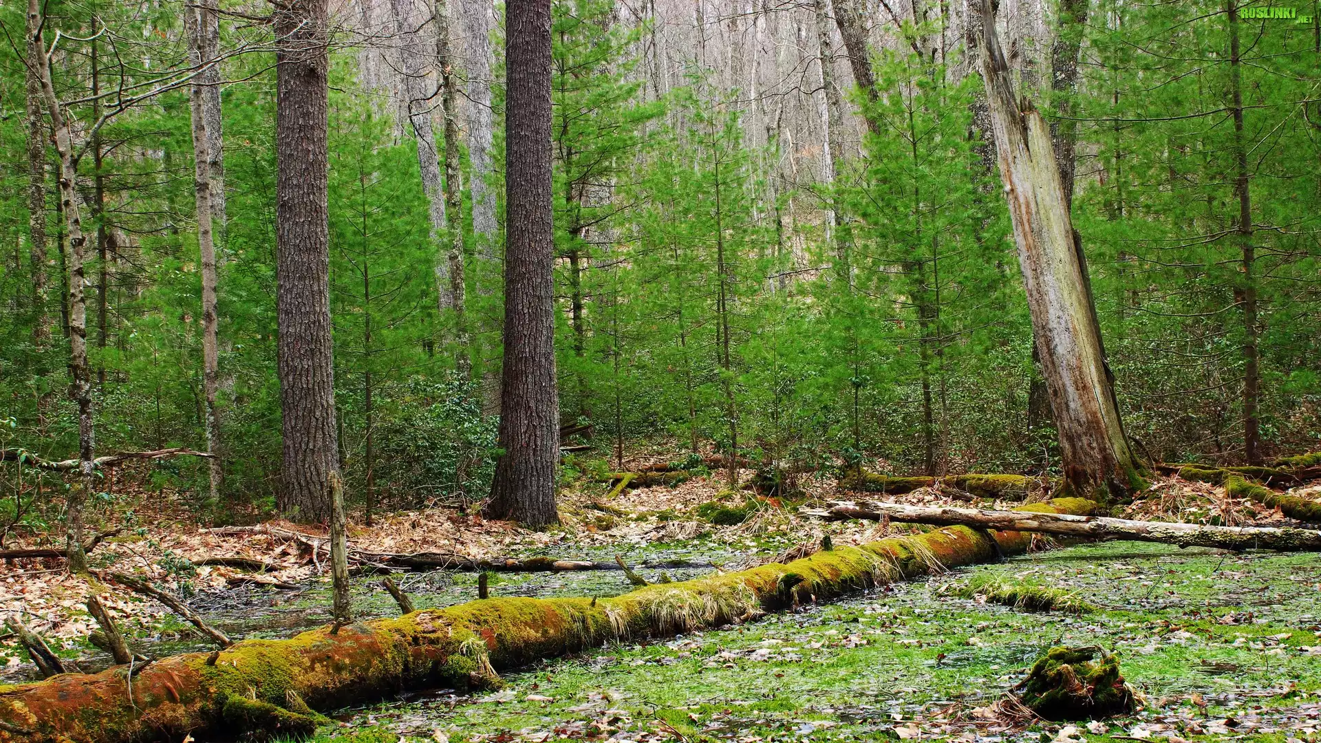 Rośliny: Las, Drzewa, Omszony, Leżący, Pień