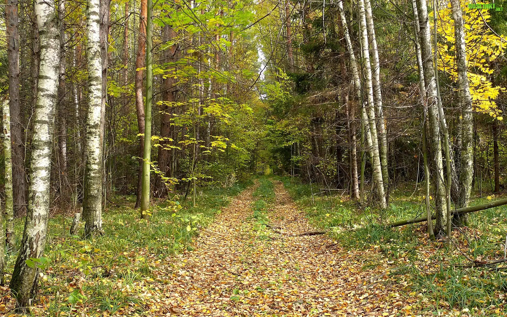 Rośliny: Las, Droga, Brzozy, Liście, Jesień