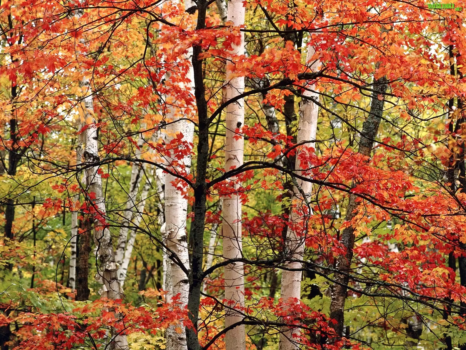 Rośliny: Las, Jesień, Drzewa, Liście, Kolorowe
