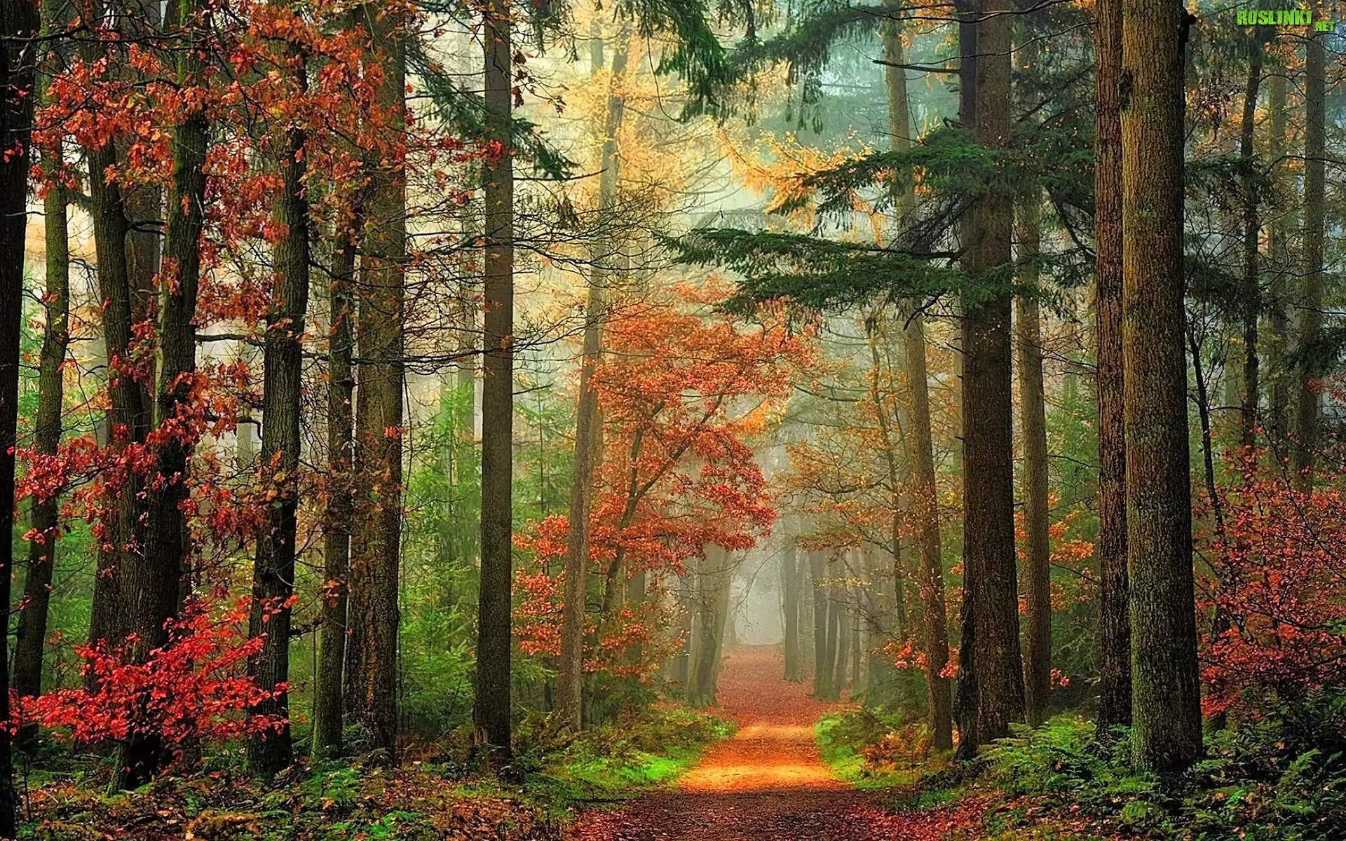 Rośliny: Las, Droga, Przebijające, Światło, Liście, Jesień