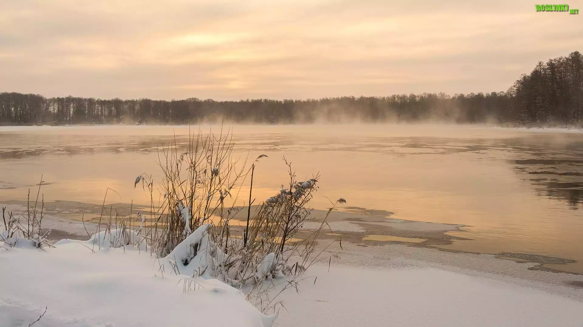 Rośliny: Las, Drzewa, Rośliny, Jezioro, Mgła, Zima
