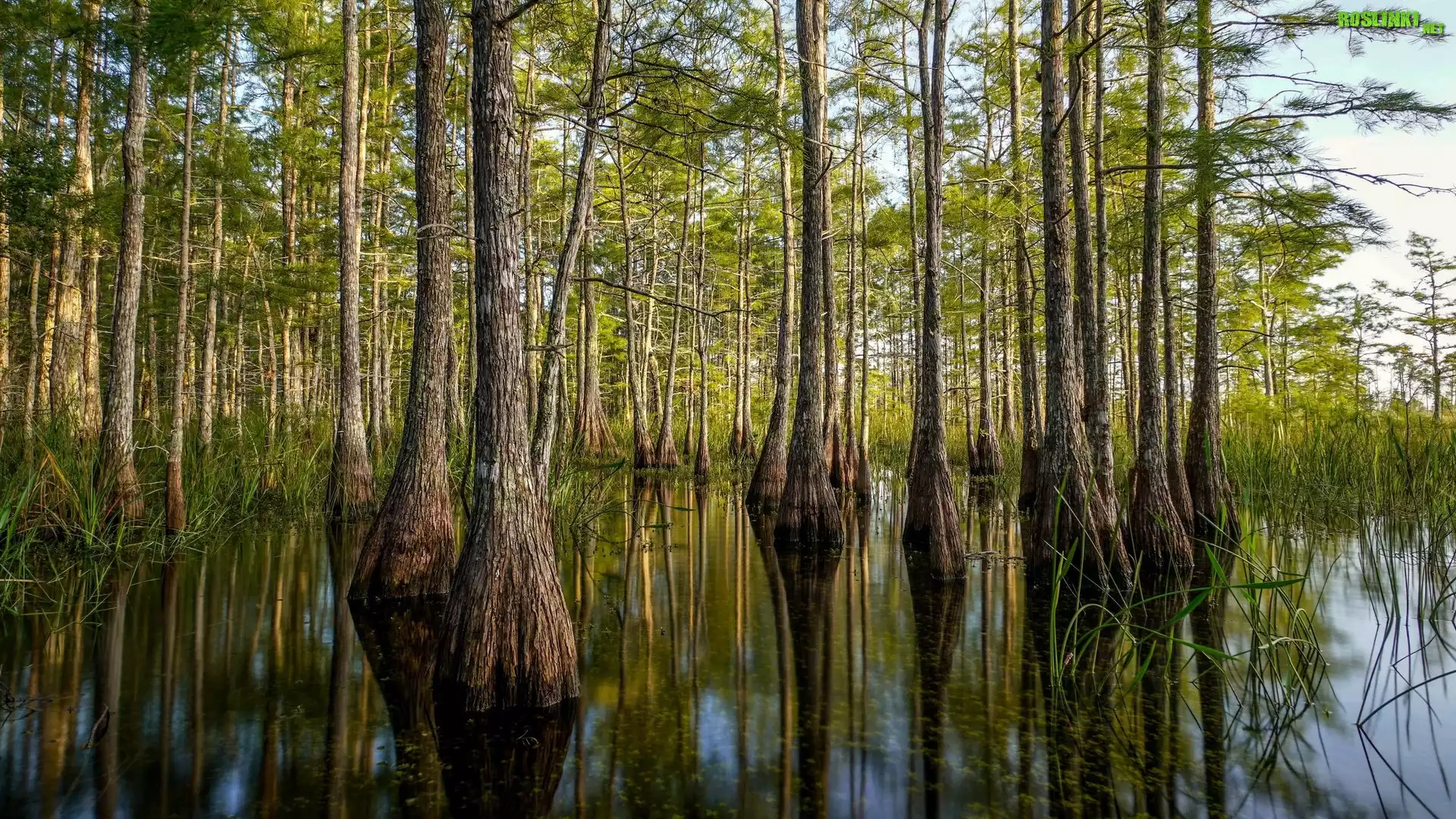 Las, Drzewa, Cyprysy, Mokradła, Rezerwat, Big Cypress National Preserve, Stan Floryda, Stany Zjednoczone |