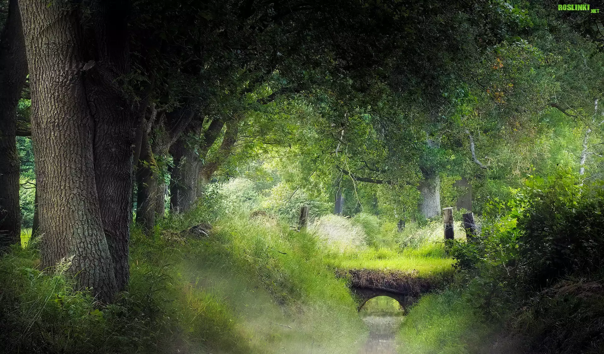 Rośliny: Las, Drzewa, Rzeka, Mostek, Trawa