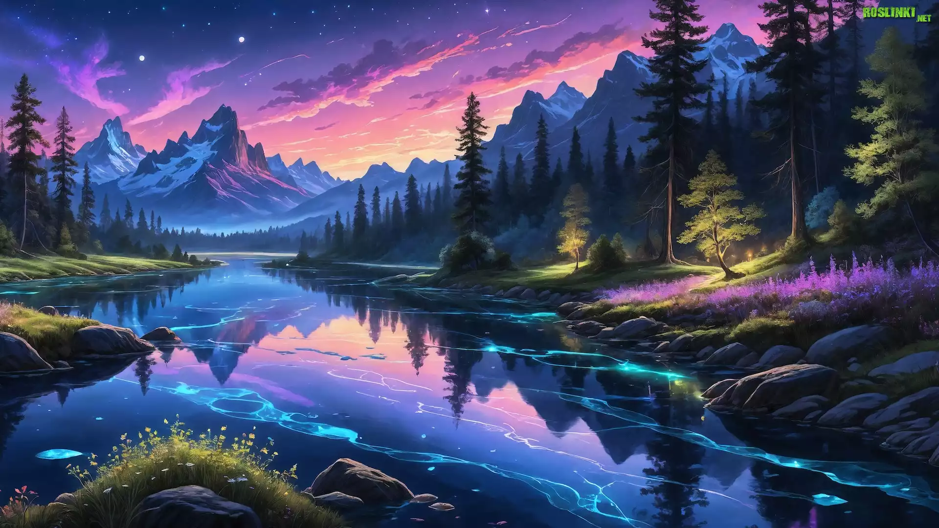 Rośliny: Grafika, Góry, Rzeka, Las, Drzewa, Odbicie
