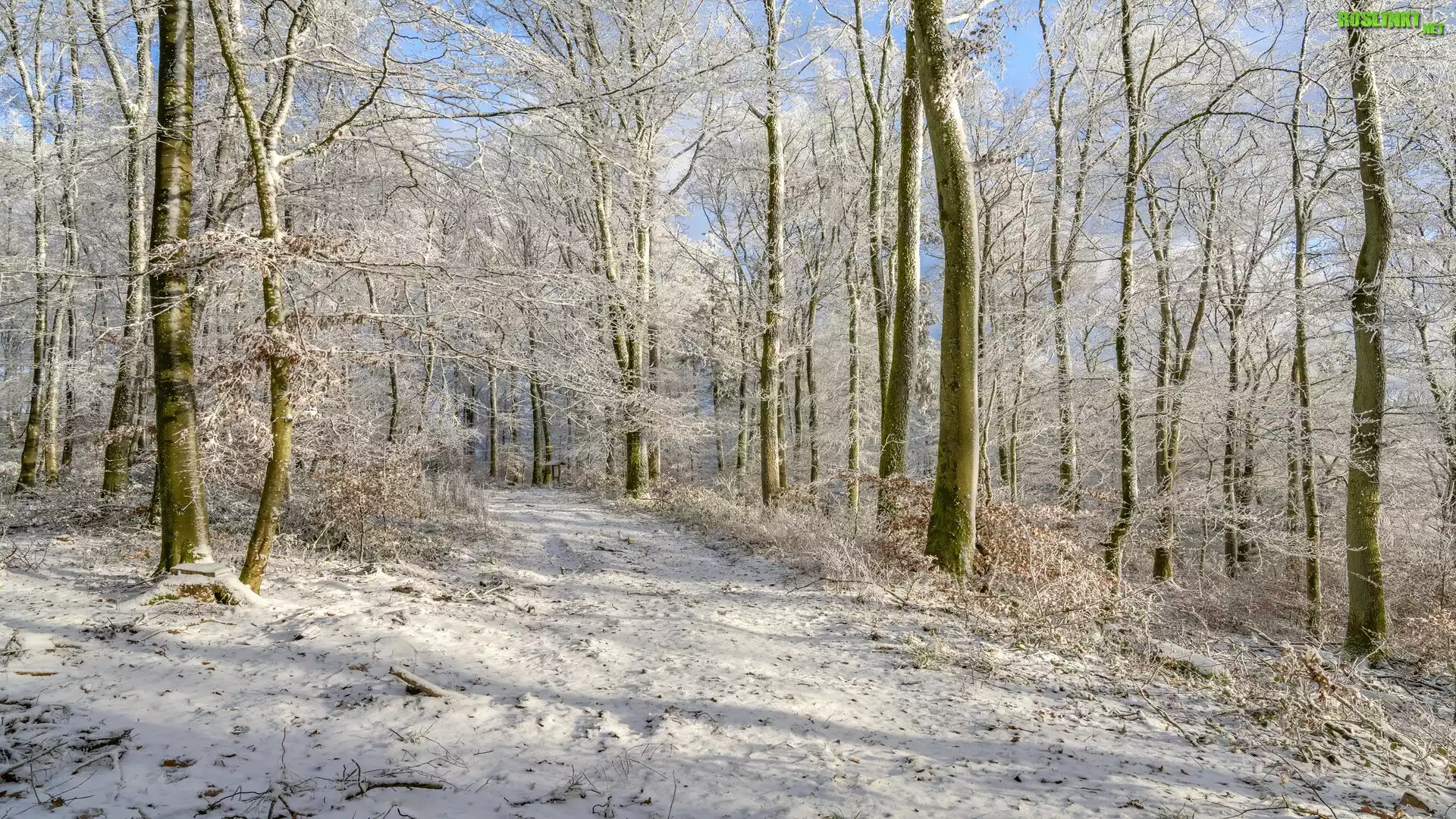 Rośliny: Zima, Las, Oszronione, Drzewa, Droga