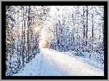 Zima, Śnieg, Droga, Las, Drzewa, Oszronione