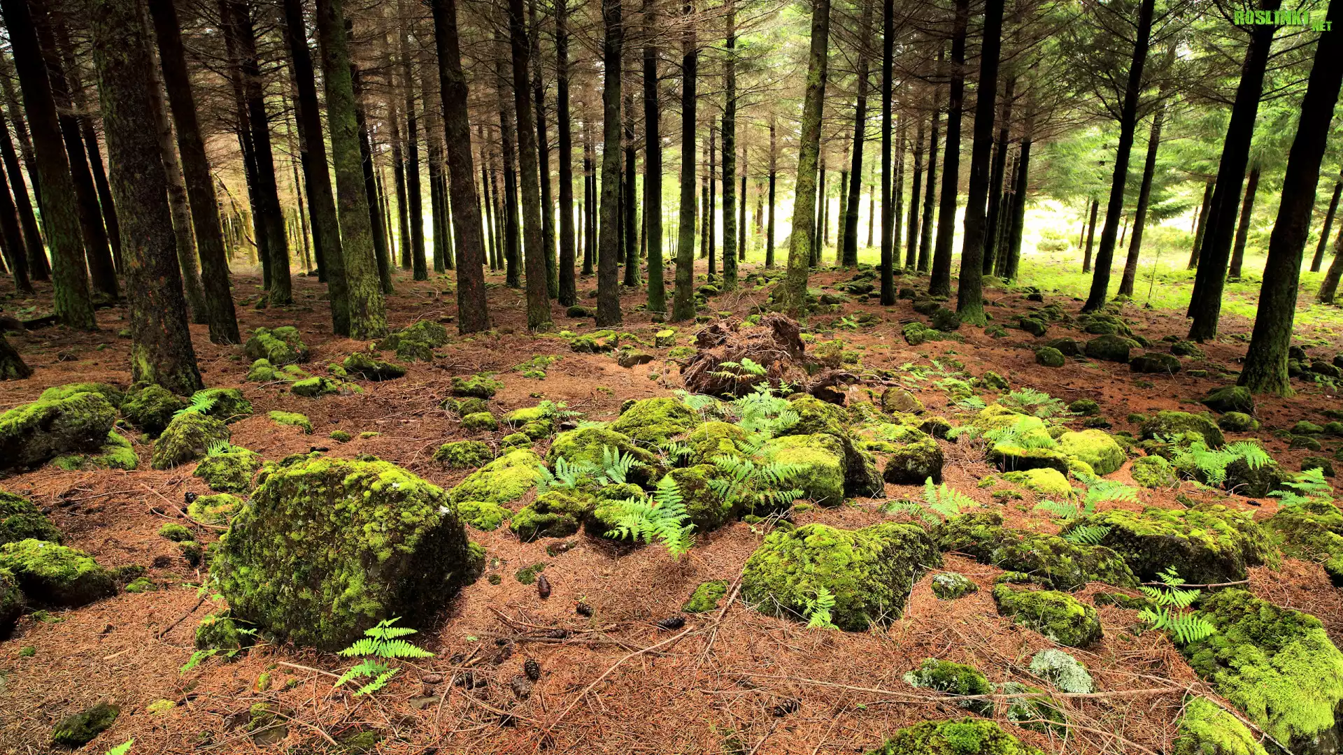 Rośliny: Las, Drzewa, Omszone, Kamienie, Paprocie, Polana