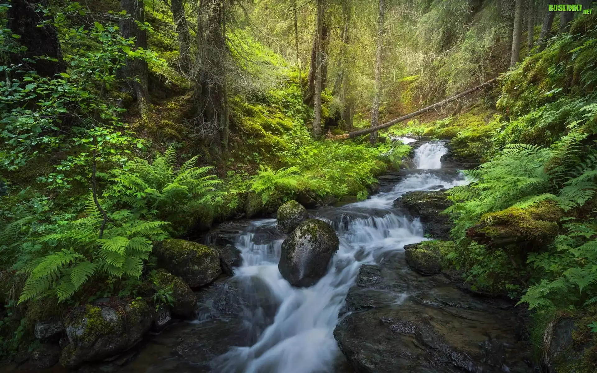 Rośliny: Las, Potok, Strumień, Roślinność, Paprocie, Drzewa