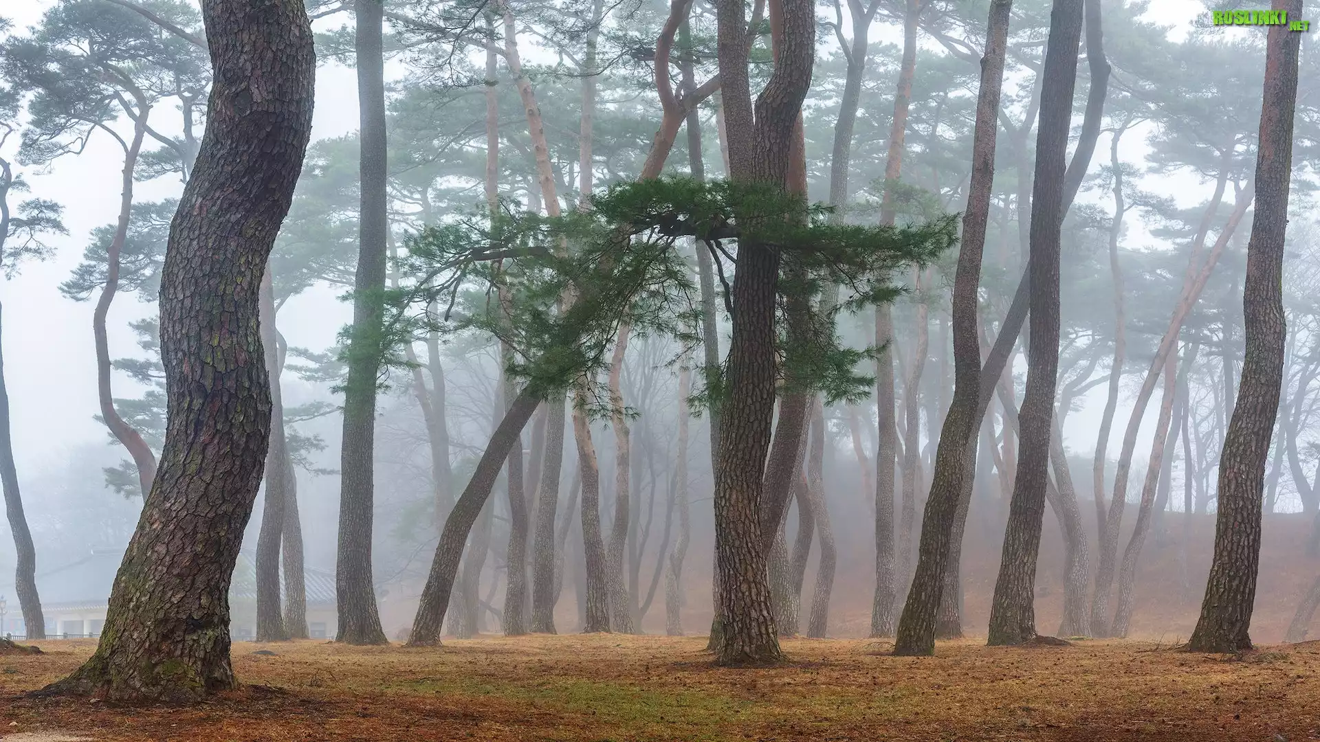 Rośliny: Las, Drzewa, Pnie, Mgła