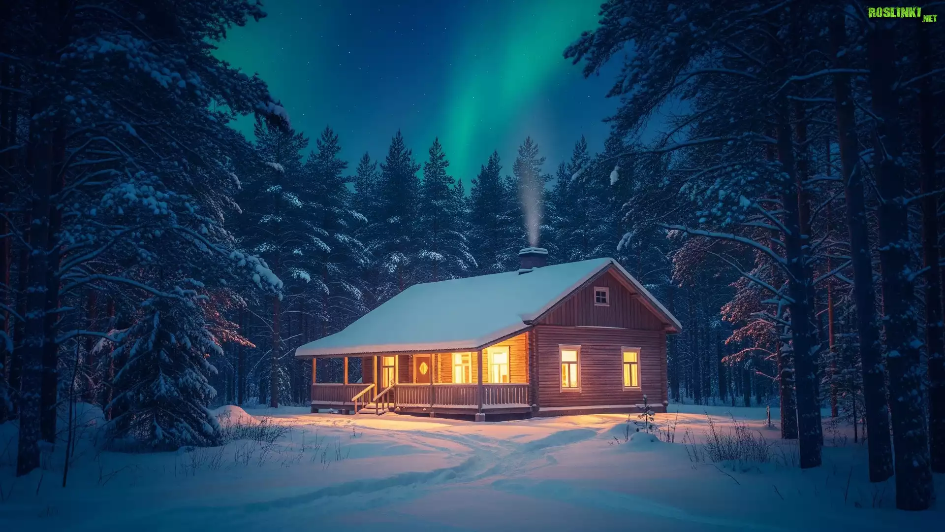 Rośliny: Zima, Dom, Drzewa, Las, Zorza polarna
