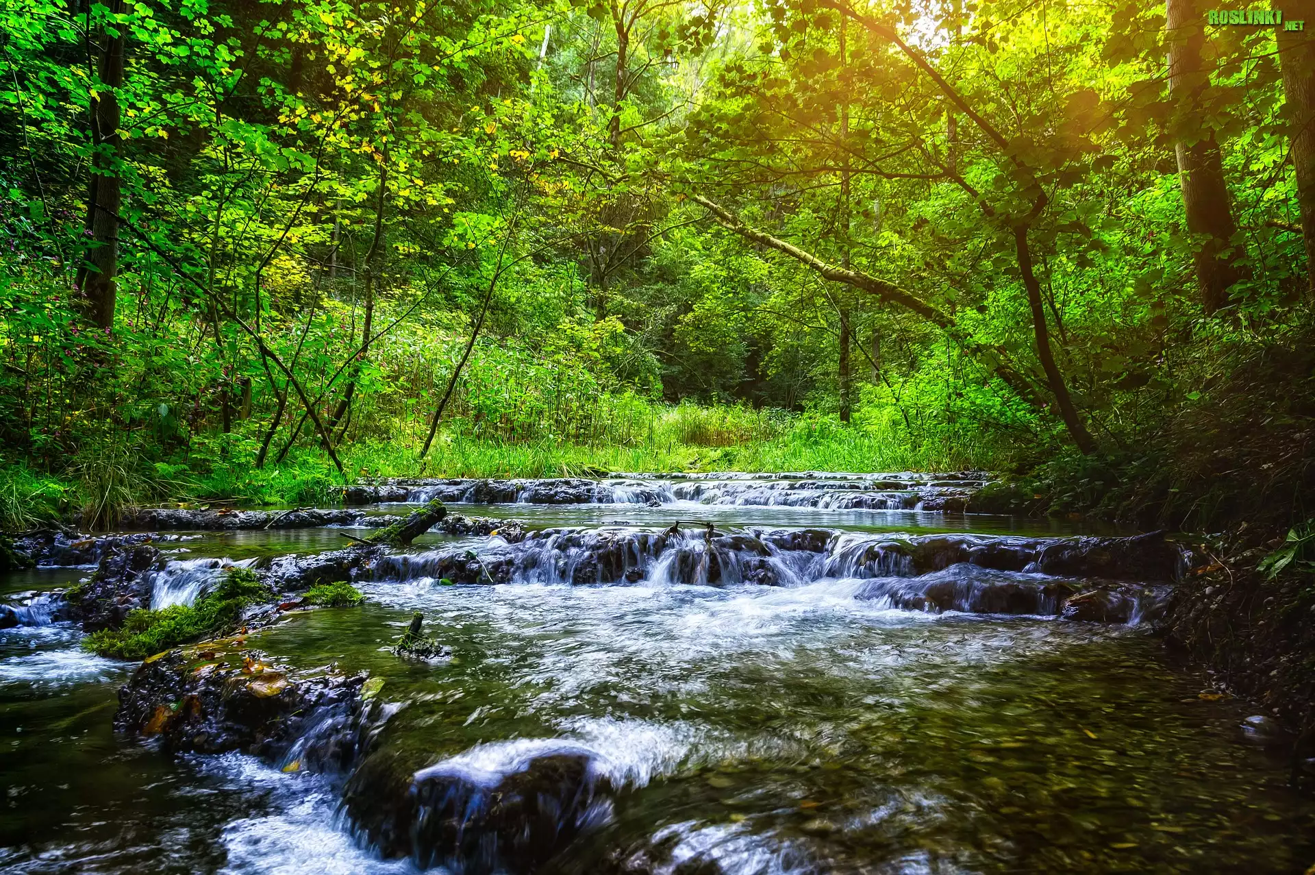 Rośliny: Drzewa, Las, Potok, Rzeka, Kamienie