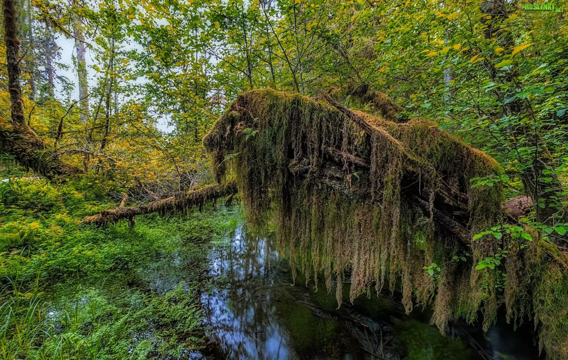 Rośliny: Las, Rozlewisko, Omszałe, Powalone, Drzewa