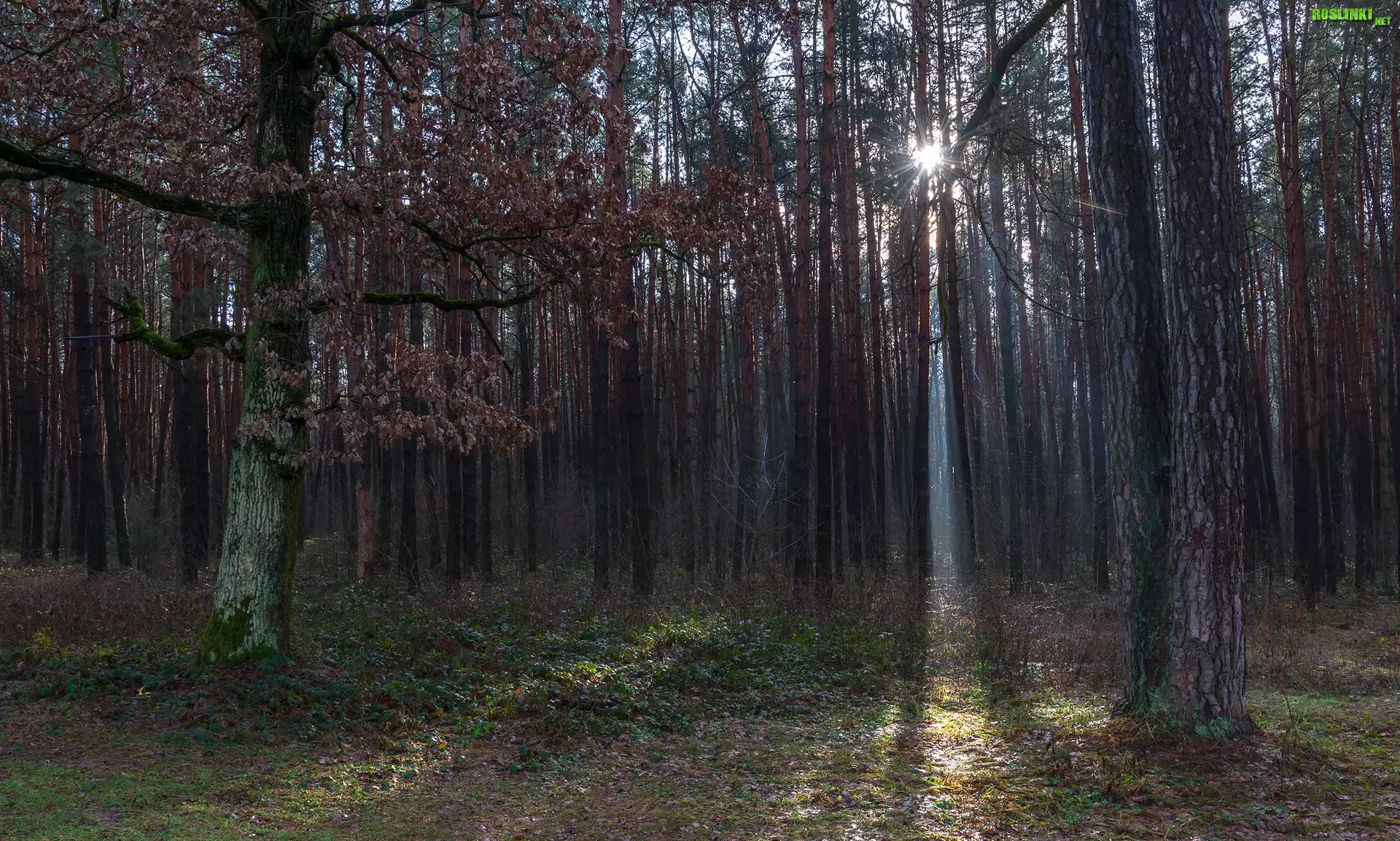 Rośliny: Las, Drzewa, Liście, Jesień, Promienie słońca