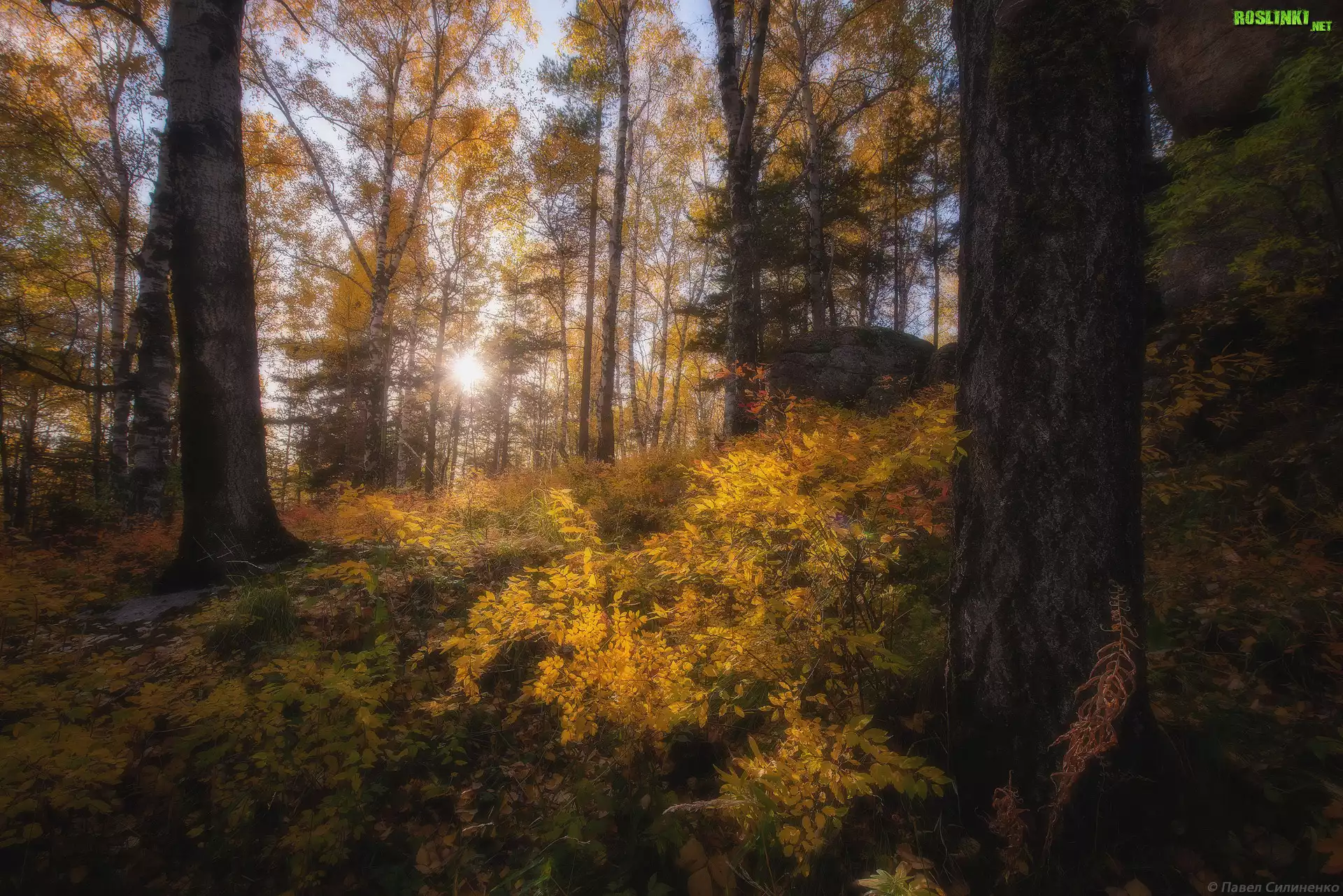 Rośliny: Las, Drzewa, Rośliny, Jesień, Promienie słońca