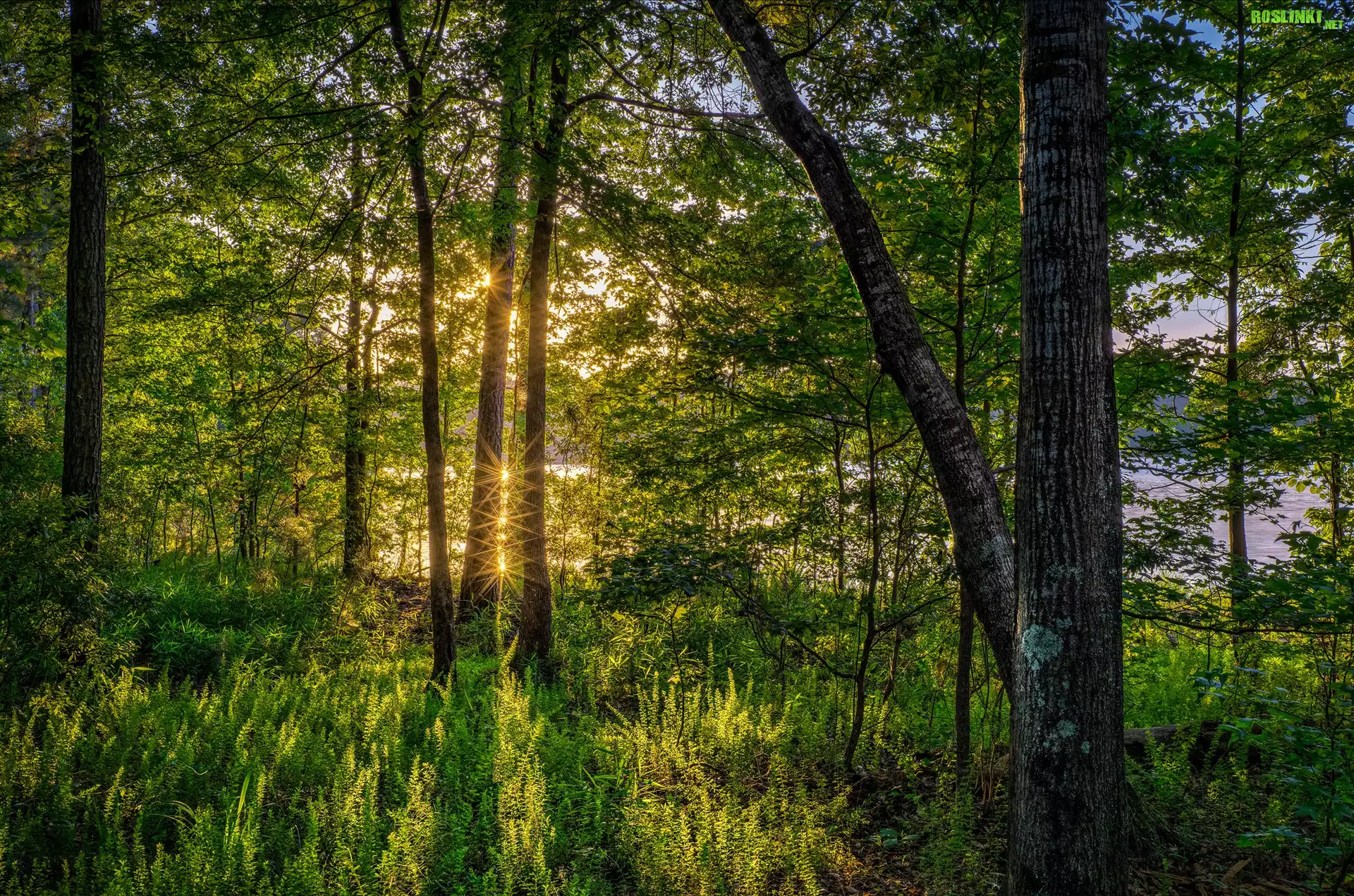 Rośliny: Las, Drzewa, Rośliny, Promyki, Słońce