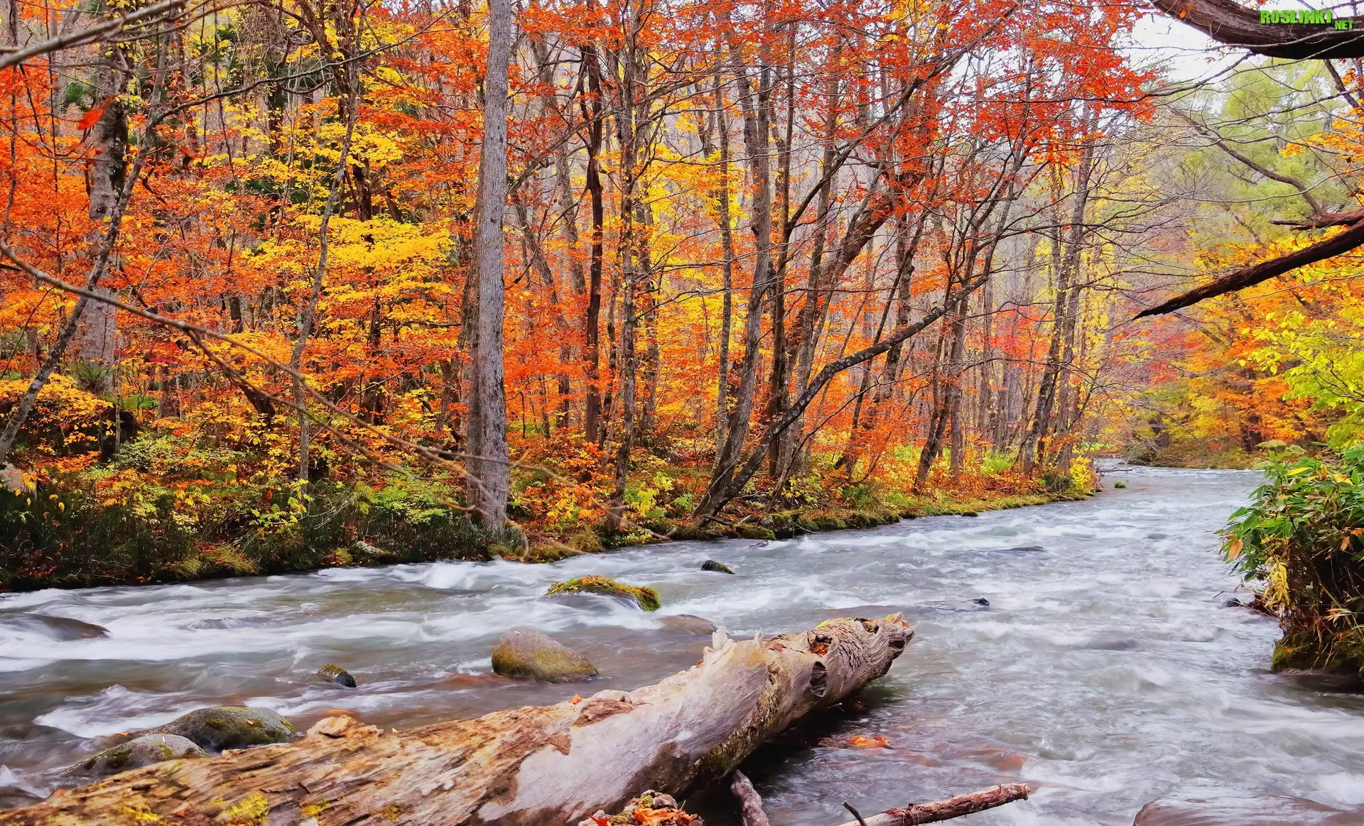Rośliny: Las, Rzeka, Kamienie, Drzewa, Roślinność, Jesień