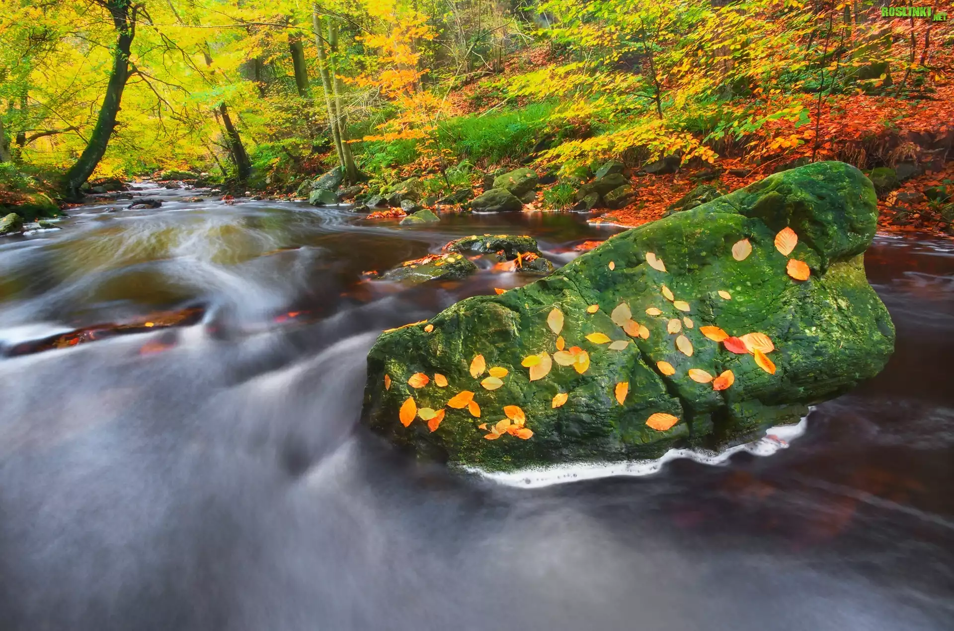 Rośliny: Las, Liście, Drzewa, Rzeka, Kamienie