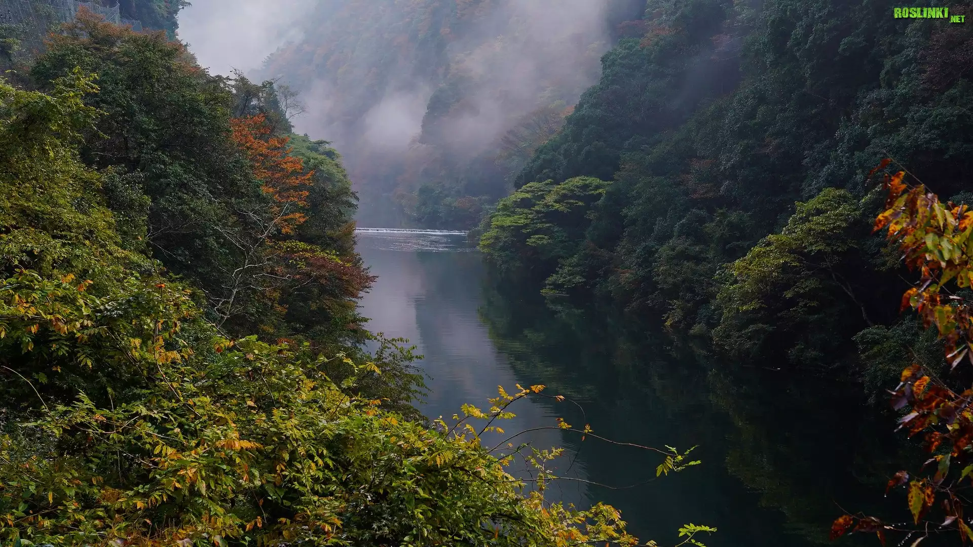 Rośliny: Rzeka, Mgła, Drzewa, Las