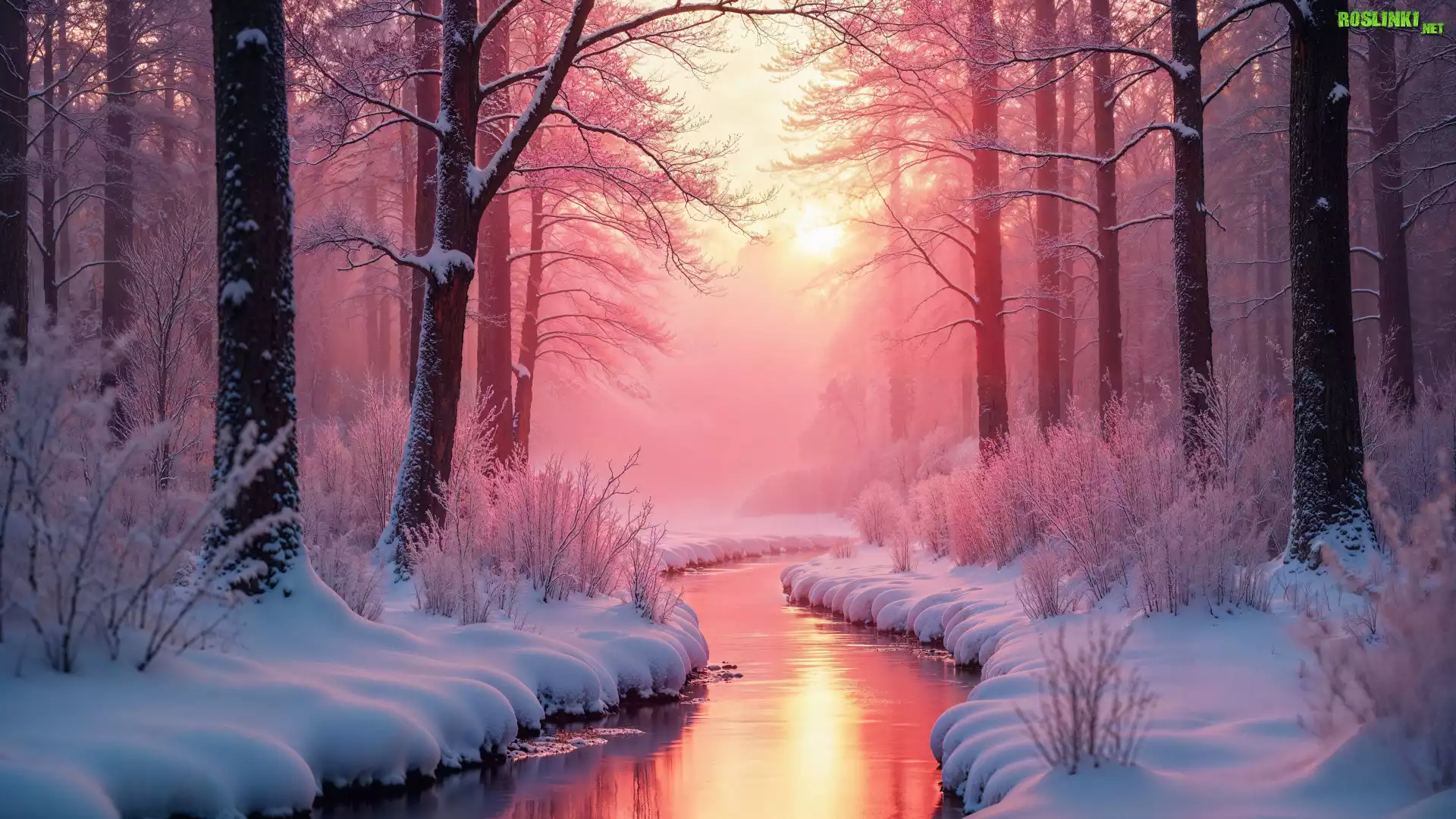 Rośliny: Zima, Las, Rzeka, Poranek, Drzewa