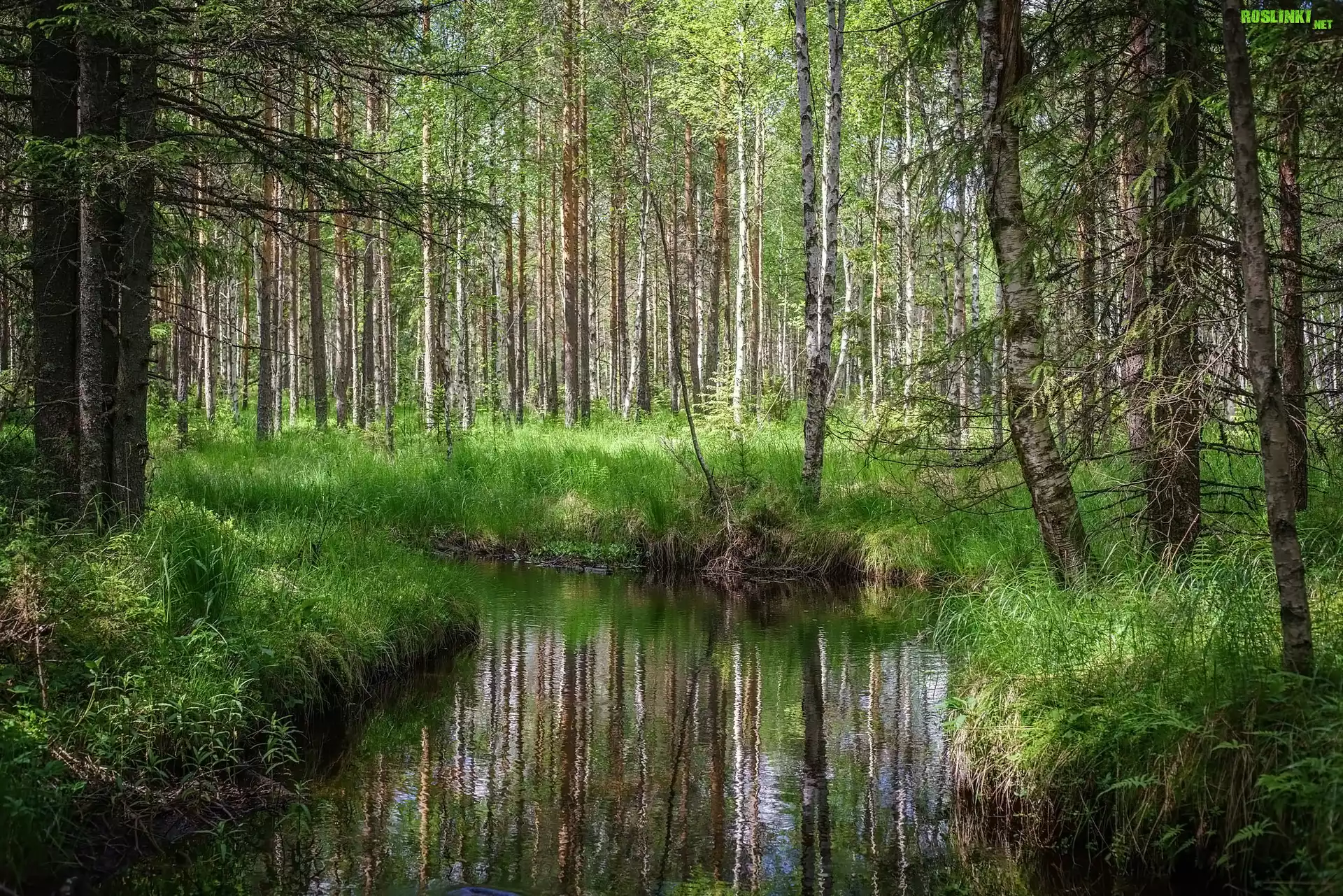 Rośliny: Las, Drzewa, Rzeka, Trawa